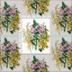 Ilustracion botánico de antaño de los zorros en amarillo, rosa y naranja