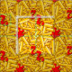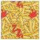 Tela de novedad con estampado de patatas fritas, salpicada de salsa roja. Perfecto para cualquiera que ame la comida rápida.