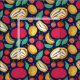 Impresión brillante con frutos multicolores sobre un fondo azul