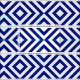 La tela geométrica elegante ofrece la alternancia de galones azules y blancos. Algunos galones convergen periódicamente para formar una pila de diamantes de blancos y azules de alternancia en este modelo gráfico intrépido.