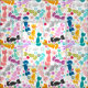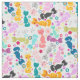 Este elegante tejido presenta un divertido y colorido patrón de gatos y flores