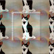 Un gato blanco y negro hermoso del estilo del dibujo animado se sienta presumido esperándole.