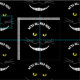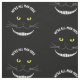 El gato transparente sonriente de Cheshire con amarillo observa el dibujo con de la sonrisa famosa, del ojo amarillo y del bigote. "Todos estamos enojados aquí!" Usted puede cambiar fácilmente color de fondo a cualquier color que usted quiera