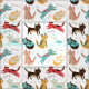 Los amantes de los gatos adorarán este lindo patrón de gatos gatitos con saltar, sentarse y dormir gatos con "mauce" en diferentes idiomas.