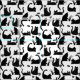 Este patrón dibujado a mano es una compilación de peludos felinos negros que golpean varias cosas - tazas de café, suculentos, telediarios y jarrones de flores. Un patrón gracioso para los que aman a sus gatos, aunque a veces son tontos que golpean las cosas.