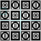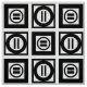 La tela elegante ofrece un modelo geométrico intrépido de repetir casillas negras con el espacio entre ellas. Los cuadrados gruesos diagonalmente opuestos cada uno contienen un círculo negro fino con un signo de igualdad grueso dentro. En cambio, los cuadrados finos cada uno contienen un círculo negro grueso que toque los bordes del cuadrado con un signo de igualdad vertical fino dentro. Grande para la decoración casera.