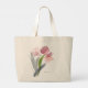 Bolso grande con hermosas flores/tulipanes de acuarela rosadas femeninas y hojas verdes. Personaliza añadiendo tu nombre. Regalo perfecto para tus damas de honor.