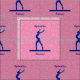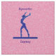 Hermoso fondo brillante rosa con una silueta de gimnasta azul brillante en el haz de equilibrio, dice gimnasia en el color púrpura encima del diseño y debajo puede personalizar con el nombre de su elección o puede elegir dejar la casilla de personalización en blanco si no quiere ningún nombre.