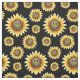 Una tela que ofrece un grupo dispersado de girasoles sonrientes. Cambie los colores de fondo golpeando el botón del personalizar.