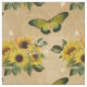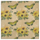 Los racimos de girasol y las mariposas amarillas/verdes tienen un fondo de color marrón claro.
