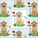 Golf Labrador Retriever - Cute Yellow Lab jugando al golf en el campo de golf, con un club de golf en la boca, un gorro y una pelota de golf. Derechos reservados © Angi Laframboise. Graciosos regalos de personalizado de raza de perros relacionados con el golf para los amantes del perro y los golfistas.