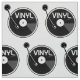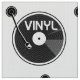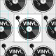 Un ilustracion vectorial en blanco y negro de un LP de vinilo, graba en un reproductor giratorio o de registro. La grabación está escrita en vinilo.