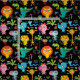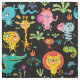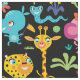 Animales de safari africanos alegres y coloridos, decoran el tejido de vivero para los niños, decorando las habitaciones y las artesanías. El patrón incluye una linda jirafa graciosa, cebra, tigre, león, mono, elefante, cocodrilo, serpiente, pájaros, lagarto, etc.