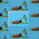 Una extraña rana verde cortando el césped al estilo personalizado.
