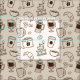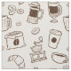 Granos de café marrón, bolsita de café, cafetera, todo sobre el patrón de elementos ilustrados del café. Perfecto para cafés que quieran decorar sus tiendas con motivos de café.