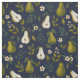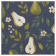 This pattern showcases beautifully hand-painted watercolor pears in lush green tones, surrounded by flowing leaves and subtle floral details. The deep navy background enhances the vibrancy of the artwork, creating a sophisticated botanical design that feels both organic and timeless.