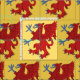 Este ilustracion desenfrenado de grifo rojo se inspiró en varios diseños herálicos de ataúd.