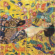 Gustav Klimt Lady With Fan Art Nouveau Painting Este retrato de una hermosa mujer muestra un fondo amarillo con adornos asiáticos, pájaros coloridos y flores de loto. La señora usa un vestido al estilo de un kimono impreso con motivos de un vestido de dragón chino. Hermosa pintura artística romántica decorativa de arte fino. Ver más de nuestros regalos de Gustav Klimt en http://www.zazzle.com/artfoxx*