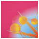 Cartel con cita bahaí de una oración de la Báb con un diseño de planetas y una estrella de nueve puntas.