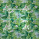 Este tejido presenta un diseño acuático con hojas de menta y flores.