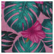 Tela Hojas de monstera e Hibiscus Verde azulado y rosad