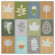 El tejido de hojas de verano es de color verde, gris, amarillo y azul, con un aspecto de colcha falso, con aplicación falsa de hojas, conos de pino y bellotas. Puede hacer que las hojas se impriman más o menos en esta tela. Un adorable patrón arroja almohada para cualquier proyecto de costura con verde, gris, amarillo o azul.
