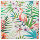 Tela Hojas tropicales de las flores de flamenco del