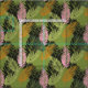 Tela Hojas verdes de palma con relieve mostaza y rosa