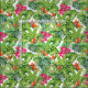 Tela Hojas verdes tropicales y floral rosa