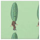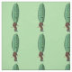 Esta tela personalizado cerca del patio tiene una imagen repetida de un hombre gracioso con un traje marrón con una gran cabeza de pepinillo verde con una cara sorprendente sobre un fondo verde claro.