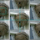 Un nido de avispones anexa a la ventana de la segunda planta del Palacio de Justicia del Condado de Iron, en Ironton, Misuri.