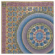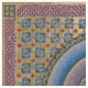 Diseño geométrico abstracto con detalles de manuscrito medievales armenio iluminado en oro, rojo, morado y azul