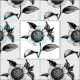 Tela Ilustracion de flores negras y blancas