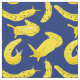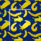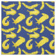 Esta tela tiene una gran estampación sobre el patrón de babosas bananeras en un brillante y alegre decorado amarillo contra un fondo azul real.