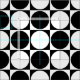 Tela impresa, blanco y negro, cuadrados y círculos