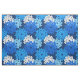 Moderna toma sobre un tradicional tejido floral kimono japonés tradicional - flores estilizadas en cobalto y azul ceruleño, aqua y blanco sobre un fondo azul marino oscuro / índigo