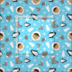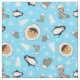 Tela azul de invierno adorable con un patrón de niños, pingüinos, mitones y abetos inuit alasqueses adorables