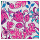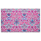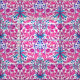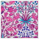 Tela en un modelo de William Morris del vintage de los jacintos, tulipanes y hojas, en las sombras de fucsia y suavemente del rosa, acentuadas con azul marino y turquesa, en un fondo blanco