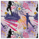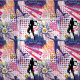 Tela Impresionante patrón de tenis morado + rosa + amar