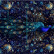 Los tonos dominantes son el azul profundo, el violeta y las tetas, creando un ambiente lujoso y místico. Los acentos de oro, ámbar y cobre añaden calidez y contraste, mejorando la profundidad del diseño. La interacción de los tonos oscuros y claros le da una calidad luminosa, casi irrisoria, que recuerda cómo las plumas reales de pavo real captan la luz. 2. Composición y patrones Las formas giratorias y superpuestas de plumas crean un movimiento fluido y orgánico. Cada pluma presenta una delicada línea de trabajo, siguiendo las curvas naturales de las columnas de pavo real.