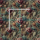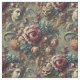 En Affectionate Wrath, suntuosas flores de peonía, rosa y dalia se derraman a través de una extensión ornamental, sus delicados tonos de rubor, oro y marisco ocultando un cortejo mucho más oscuro. Una musa serena mira suavemente a través del follaje, mientras que un grotesco esquelético grina con devoción depredadora -belleza y amenaza encerradas en la disputa de un amante. Perfecto para tapicería, desagüe o prendas que demandan opulencia con un borde.