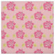 El tejido presenta un original ilustracion de marca de flores de hibisco rosa tropical con hojas verdes, impreso en un fondo rosa pálido.
