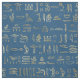Este diseño audaz tiene jeroglíficos de oro metálico inspirados en Egipto sobre un fondo azul.