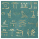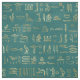 Este diseño audaz tiene jeroglíficos de oro metálico inspirados en Egipto sobre un fondo verde.