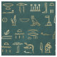 Este diseño audaz tiene jeroglíficos de oro metálico inspirados en Egipto en un oscuro fondo verde bosque.