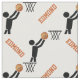 Un jugador de baloncesto con bola y tu nombre tejido personalizado que muestra un ícono minimalista de una silueta negra de un jugador de baloncesto tratando de poner la pelota naranja en la canasta y tu texto sobre fondo blanco. Algunos elementos son cortesía de vectorportal.com.