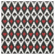 Los corazones rojos, los diamantes y los clubes negros y espadas sobre un fondo de formas de diamante blanco y negro.