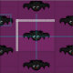 Un bate lindo al estilo kawaii, con un fondo morado. El personaje se ha repetido en un patrón de puntos de polka.