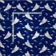Haga el regalo perfecto para su kayaker favorito con esta tela que presenta un patrón de kayaks en blanco y saltar peces en azul claro contra un fondo azul marino.