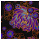 Tela de patrón japonesa con crisantemos y mamáes en púrpura profundo
